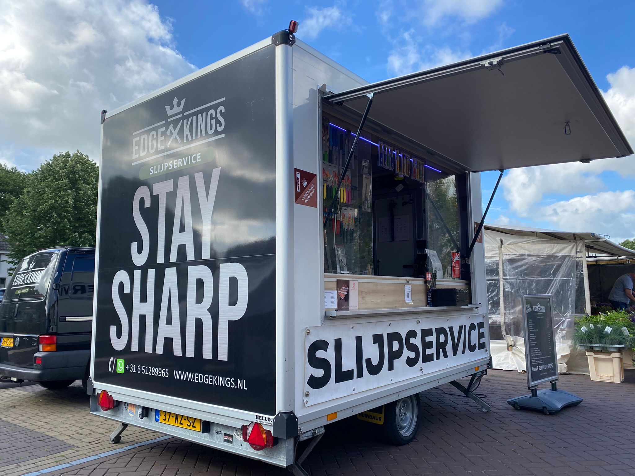 Je kunt je keukenmessen, kartelmessen, bijlen, kappersscharen, tondeuse messen, stofscharen, en andere gereedschappen nu professioneel laten slijpen, alles is weer scherper dan nieuw. En klaar terwijl je geniet van een koffietje en mooie verhalen uitwisselt met de chefs in de showroom. Dus geen dagen zonder je onmisbare tools.