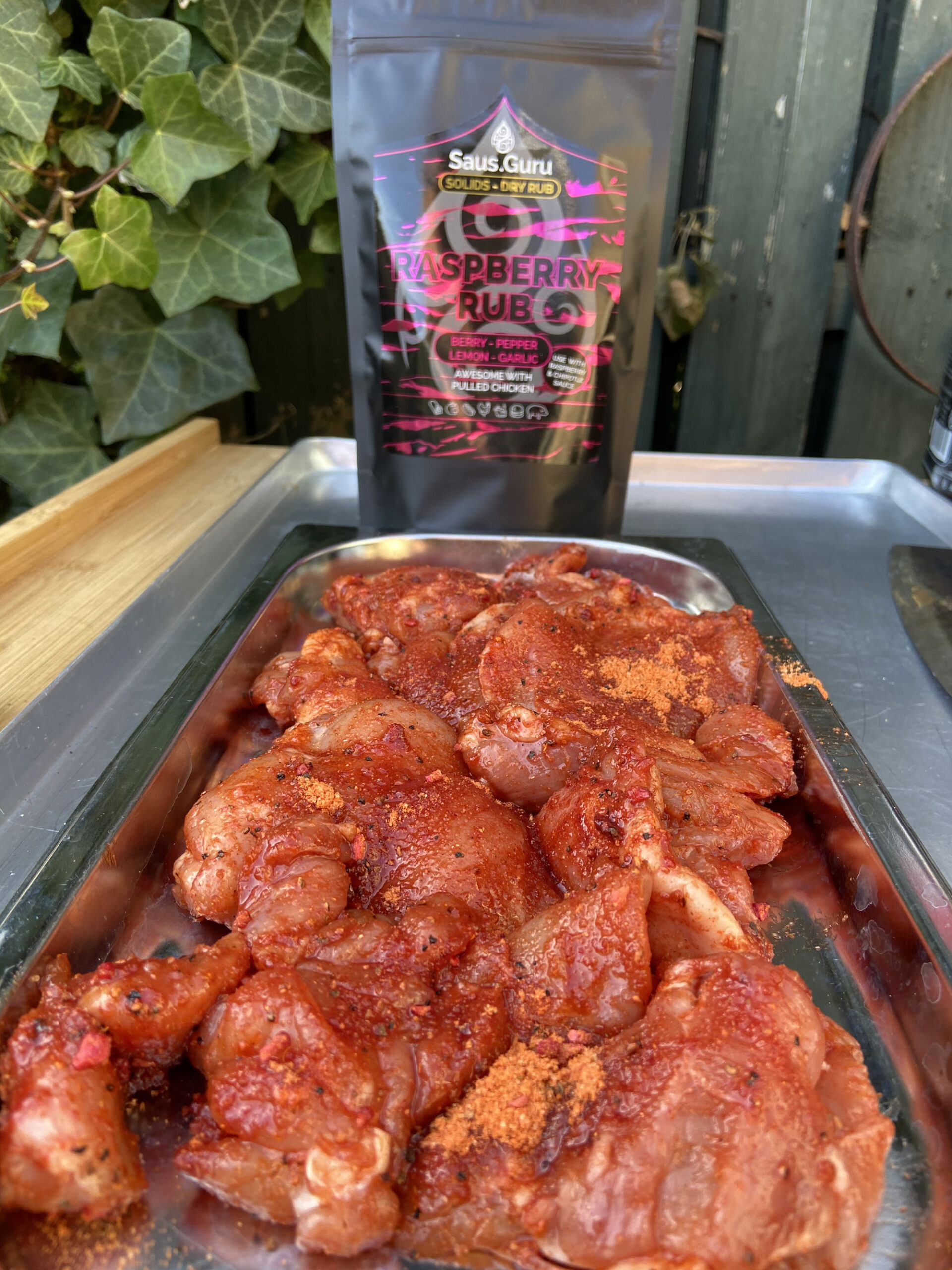 Doe de kippendijen in een mengkom en strooi de rub er overheen. Wanneer het mogelijk is probeer dit al de dag van te voren te doen. Zet deze dan afgedekt in de koelkast. Breng de kamado op 110 graden en leg de plate setter erin.