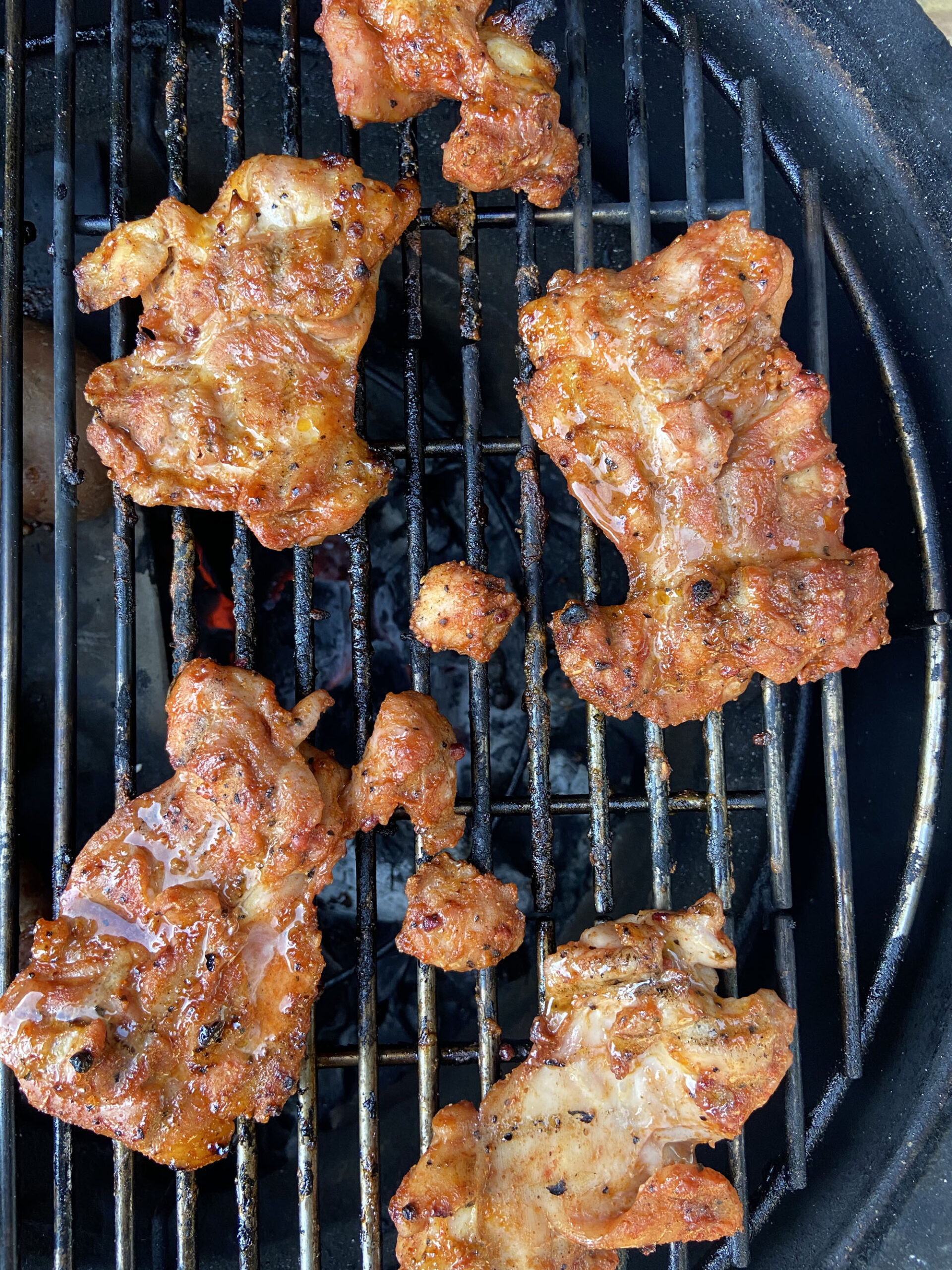 Dit recept is volledig op de bbq te bereiden, je zult dit dan wel in delen moeten doen, aangezien je voor de pancakes een andere temperatuur nodig hebt dan voor de kip. Je kan ervoor kiezen eerst een gietijzeren pan op de Q te zetten en hierin de pancakes te bakken en deze daarna weer te verwarmen op de Q. Of terwijl de kip op de Q ligt de pancakes in de keuken te bereiden. Het recept voor het beslag blijft hetzelfde.