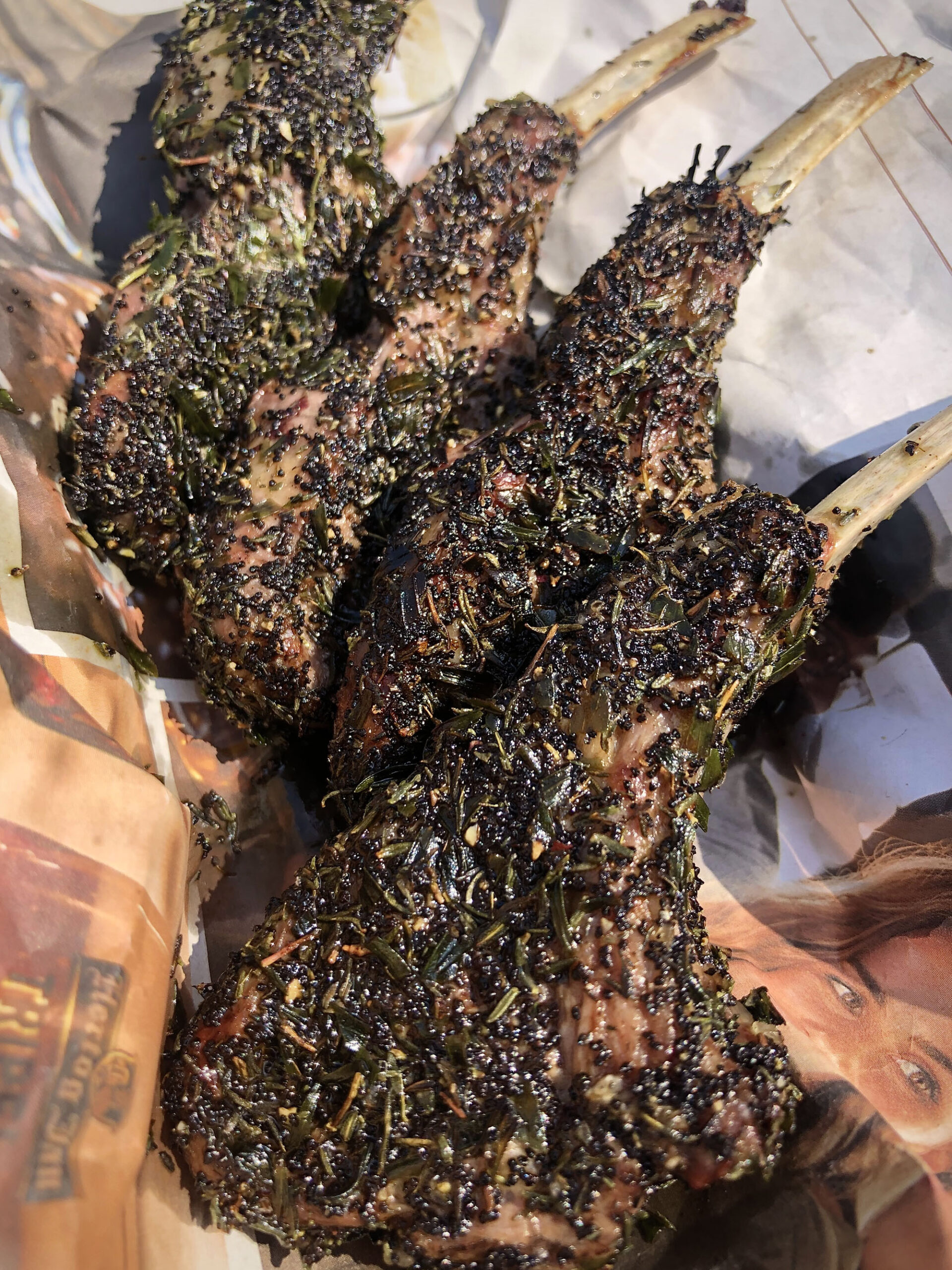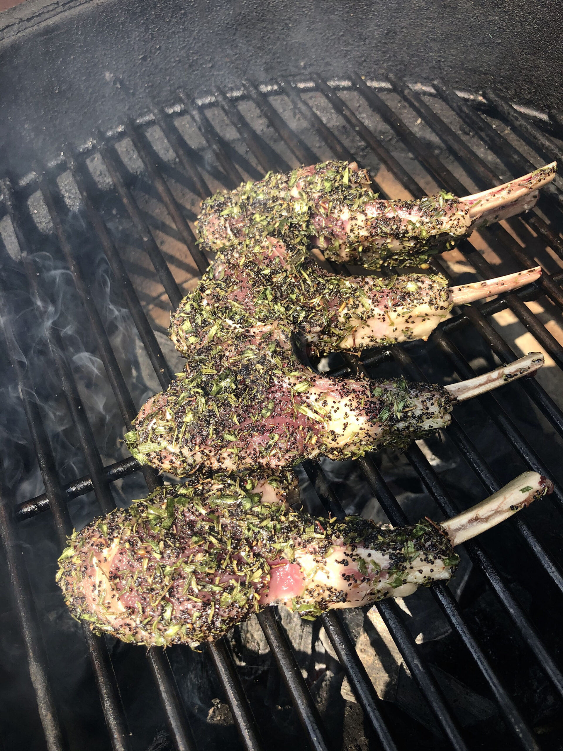 Bereid je barbecue voor op direct grillen op zo’n 180 oC – 200 oC. Haal de lamskoteletjes uit de marinade en leg ze direct boven de hete kolen. De kruiden die nog om het vlees hangen zorgen voor een heerlijke kruidenkorst. Blijf er dus wel bij en draai de koteletjes regelmatig met een barbecuetang zodat de kruiden niet verbranden.