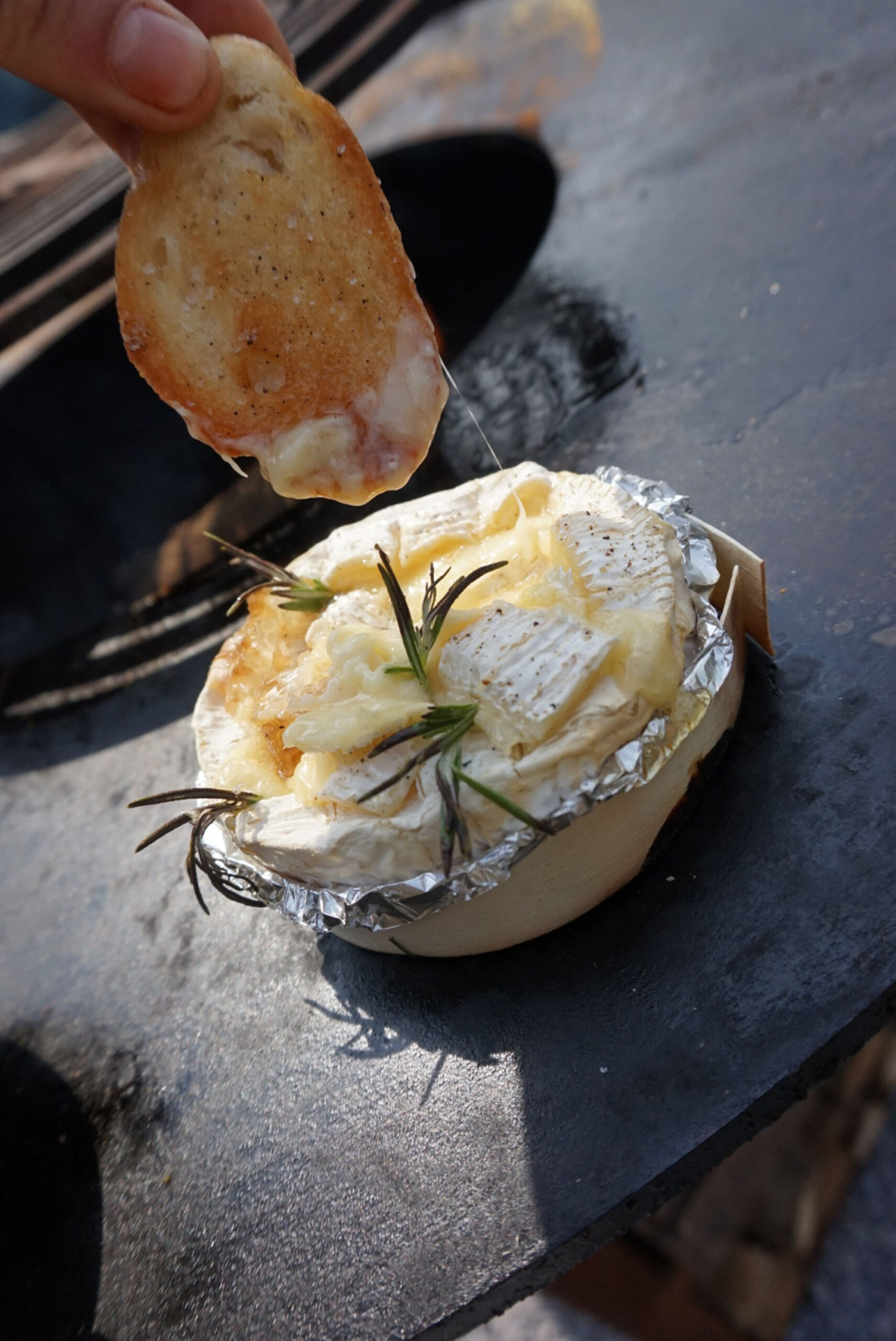 De sfeer van het vuur een goed wijntje in de hand daar hoort een mooie borrelsnack bij. Voor dit kaasje moet je wel even de tijd nemen maar dan kun je er ook nog lekker van genieten met vrienden. De smaken die we in dit recept gebruiken gaan mooi samen met een rode wijn of port. Het recept kun je natuurlijk ook prima maken in een kamado of andere BBQ met deksel. Gebruik dan een gietijzeren grillplaat.