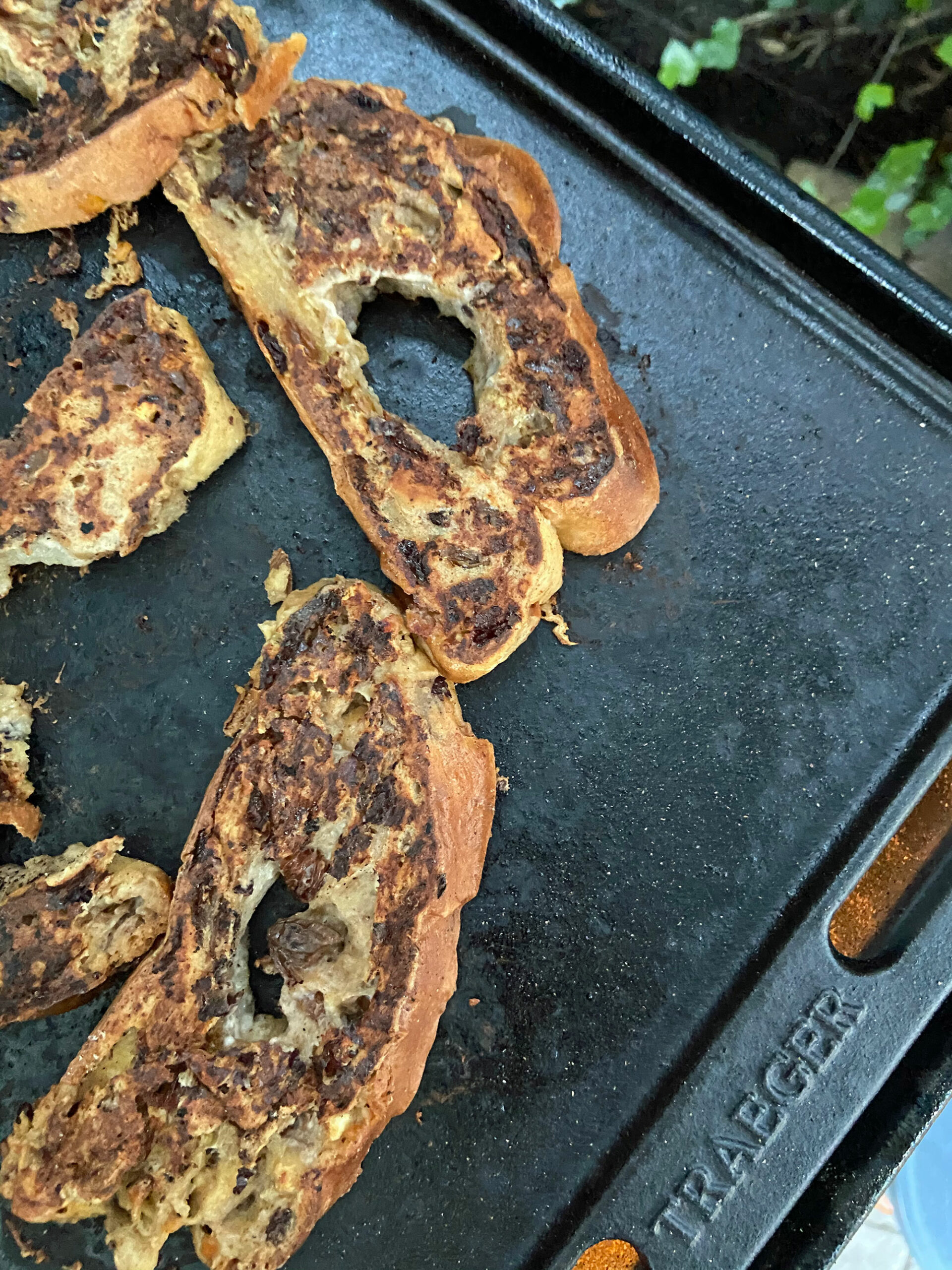 Stook de barbecue op naar 225 graden en smeer wat olijfolie op de plancha. Bak de broden nu rondom aan.