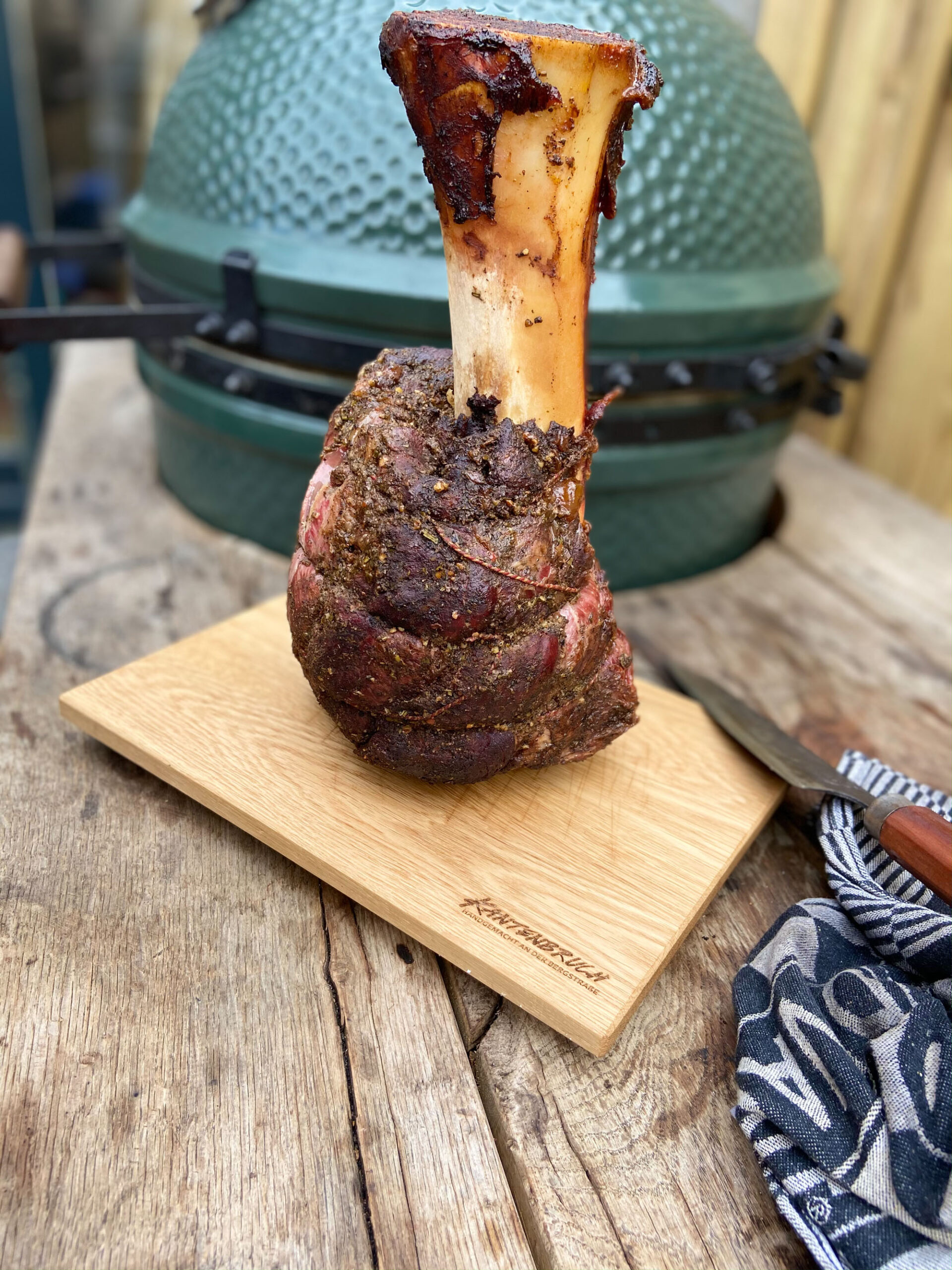 Smeer nu de beef hammer royaal in met de marinade. Leg deze in een schaal en giet de rest van de marinade er overheen. Laat nu voor minimaal 12 uur de marinade intrekken. Doe dit in de koelkast en dek het vlees af met vershoudfolie. Of als je een vacuüm zak hebt die groot genoeg is kun je het vlees ook vacumeren.