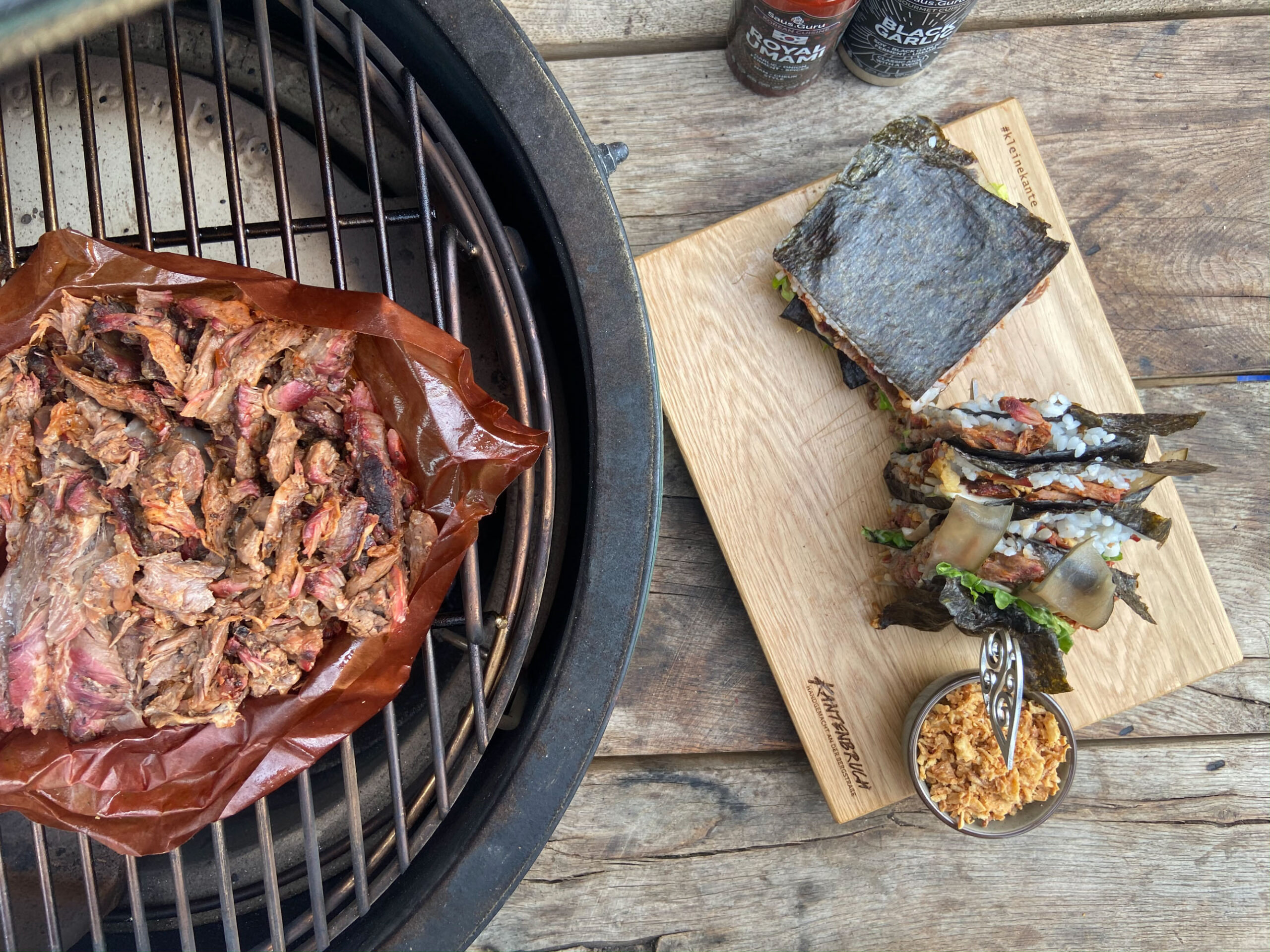 De gebruikte Beef Hammer is 3,5kg daar is de marinade op afgestemd, voor het recept van de Nori Pulled Beef Sliders heb je minder vlees nodig, de Beef Hammer heb je dus niet volledig nodig. Wanneer je dus een keer pulled (beef, pork, chicken of vega) over hebt kun je dit recept daar ook mee maken. Dan maak je niet de Beef Hammer (jammer want die is fantastisch!). BBQ keuze, voor dit recept heb ik gekozen voor een kamado BBQ. Iedere bbq waar je indirect op kan garen zou hier goed voor kunnen.
