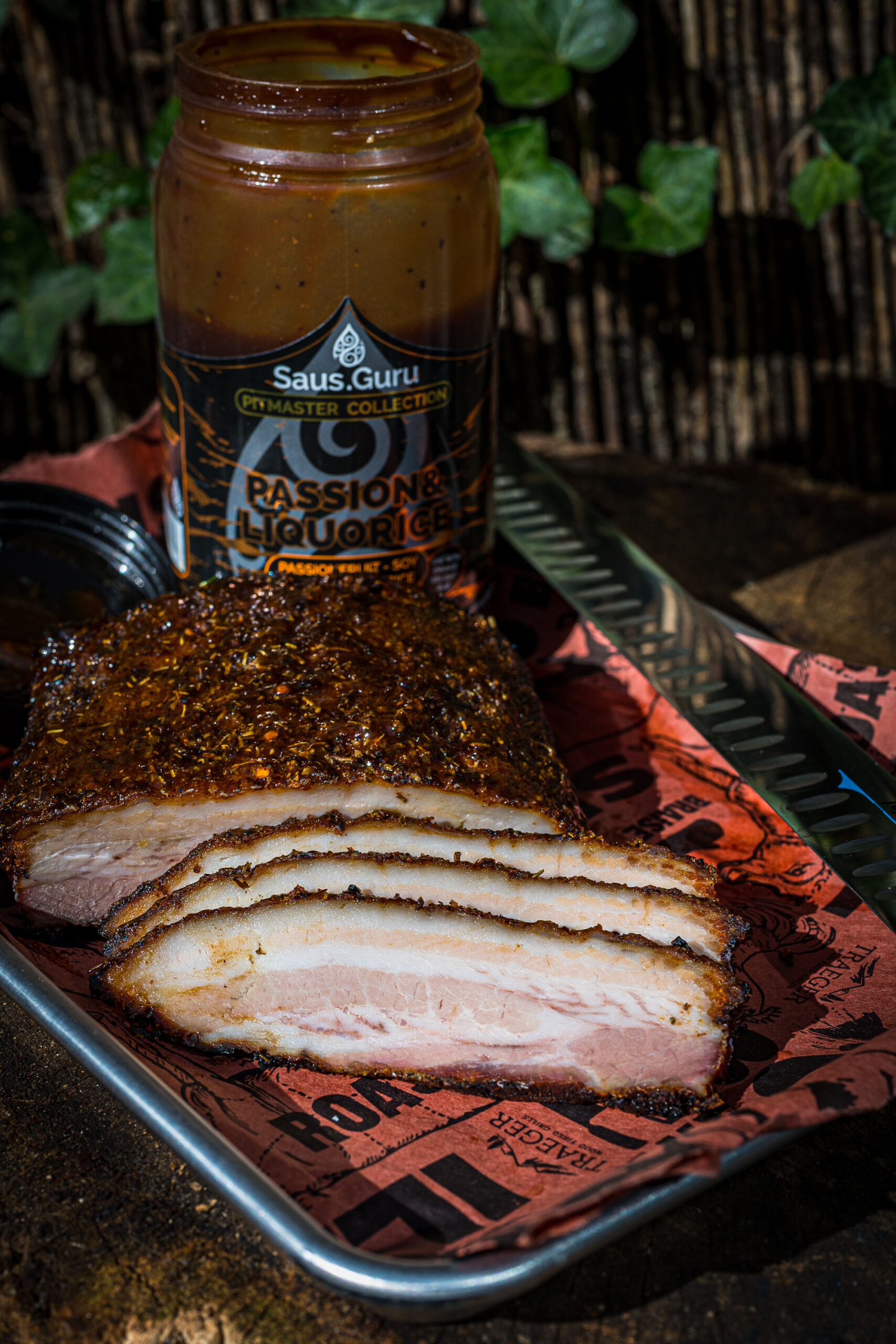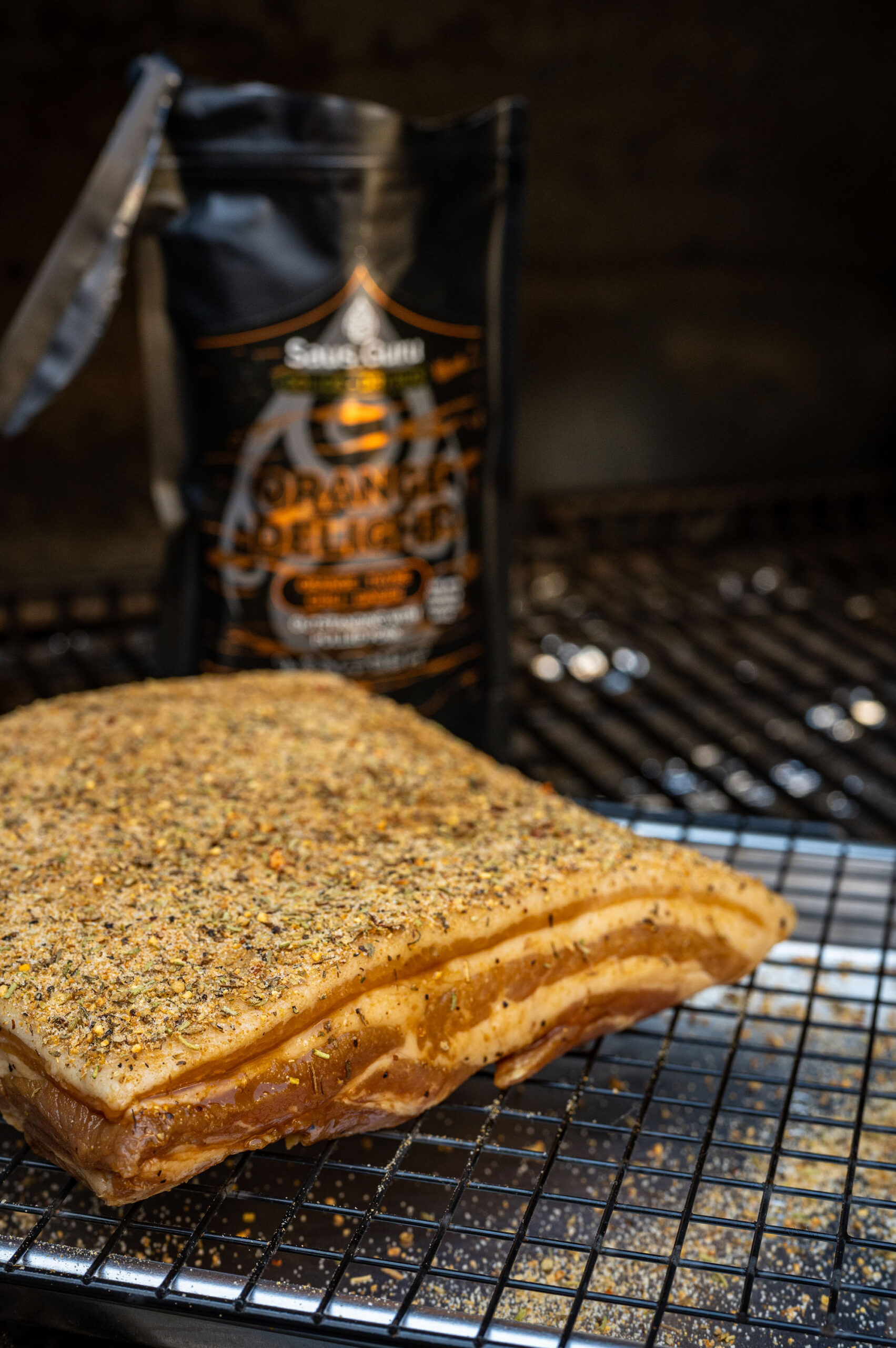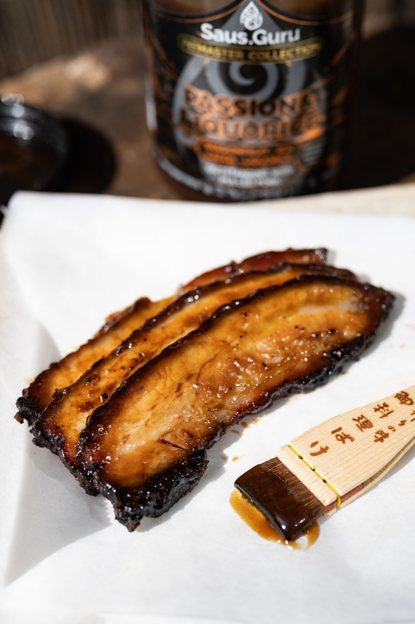 Bestrijk de plakken spek met Passion Liquorice en breng op smaak met Orange Delight rub (wanneer je het recept hierboven hebt gebruikt hoeft dat natuurlijk niet). Verwarm de plakken spek in de BBQ, doe dit indirect op 150 graden.
